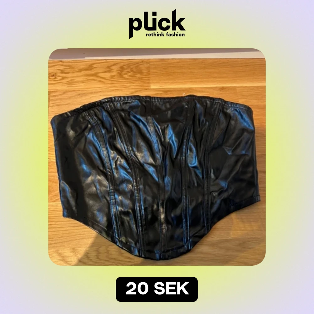 Säljer en snygg svart skinn topp med dragkedja i ryggen. Toppen har en glansig finish och ger en tight passform.