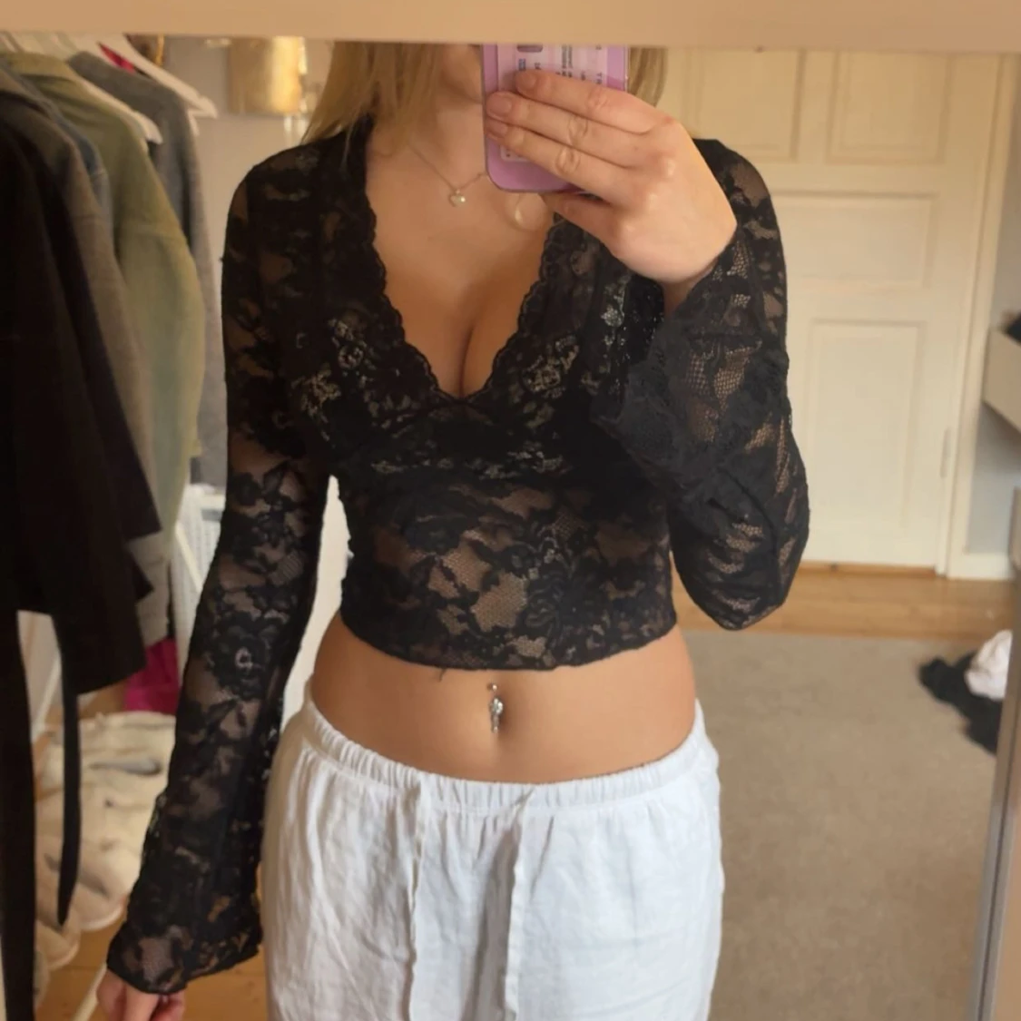 Svart spetsig croppad långärmad topp