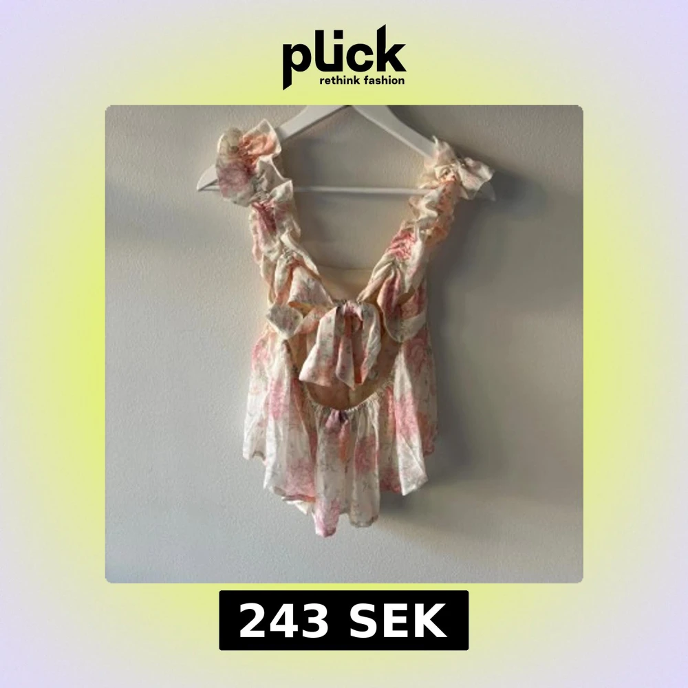 Supersöt blommig topp från H&M Divided med volangdetaljer och knyt i ryggen. Toppen är i ljusa toner av rosa och beige, har ärmlös design och ett luftigt, flowy material som känns perfekt för varma dagar.