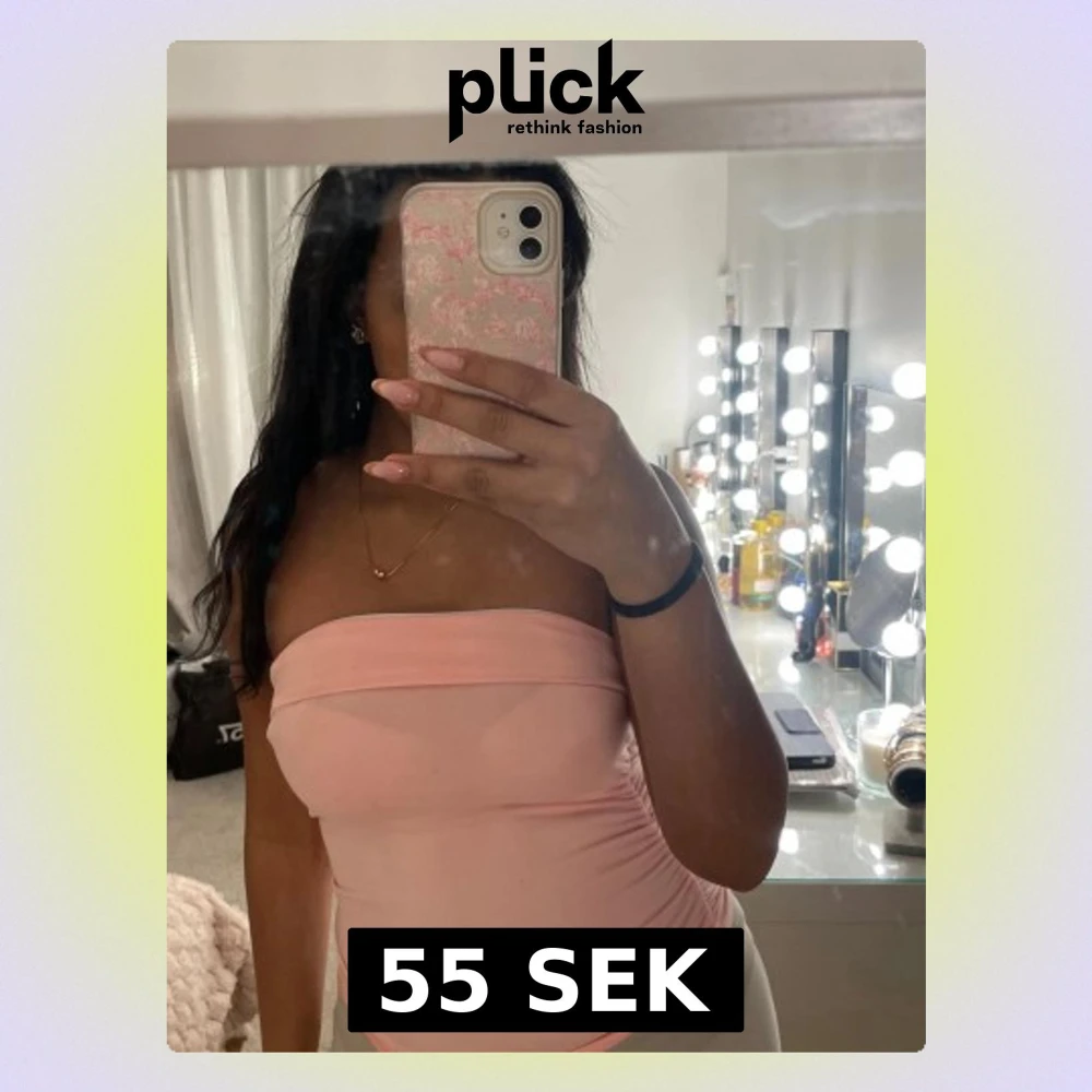 Säljer en ljusrosa bandeau tubtopp med tight passform. Toppen är axelbandslös och har en enkel, stilren design som sitter snyggt mot kroppen. Perfekt att matcha med jeans eller kjol för en trendig look.