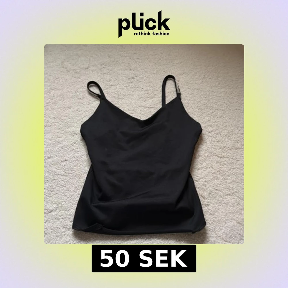 Svart linnetopp med smala axelband dekorerade med strassdetaljer. Toppen har en enkel, stilren design med v-ringning och ärmlös passform. Perfekt för dig som gillar en clean look med lite extra bling på axelbanden.