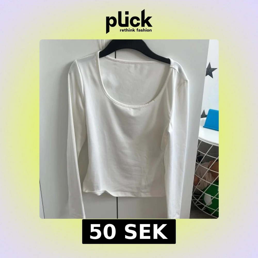 En enkel och stilren vit långärmad topp med rundad, djup urringning. Perfekt att matcha med jeans eller kjol för en clean look. Mjuk och skön bomullskänsla.