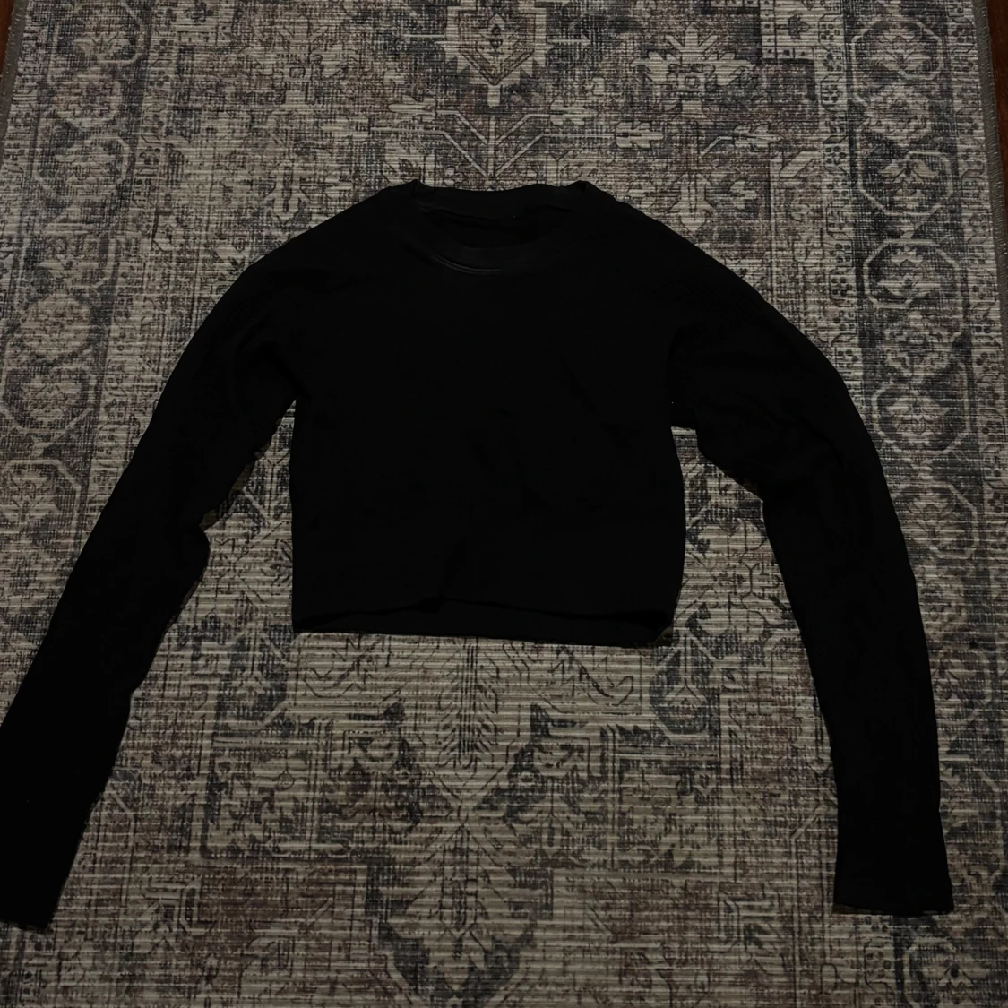 Svart croppad långärmad topp från SOSPOT, tillverkad i Italien. Materialet är mjukt och stretchigt med 92% polyamid och 4% elastan, vilket gör den riktigt skön och följsam. Enkel och clean design med rund hals och tight passform.