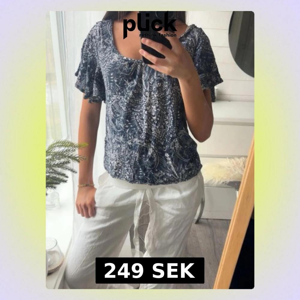 En superfin blå topp med mönster🍋🌊🤍