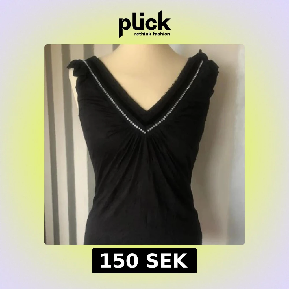 Snygg svart ärmlös topp med v-ringning och pärldetaljer längs kanten. Perfekt för en stilren look.