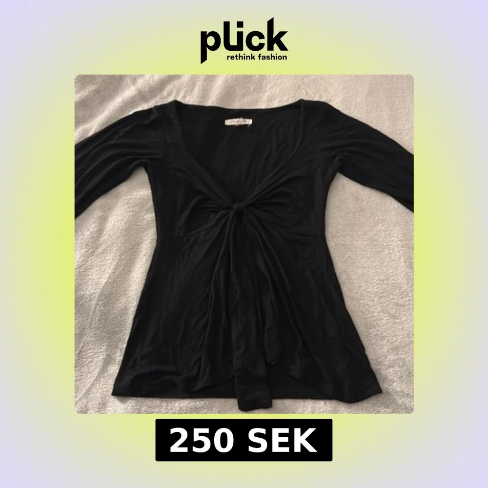 Svart långärmad topp från Design by Si med djup v-ringning och snygg knytdetalj framtill. Toppens material är mjukt och stretchigt.