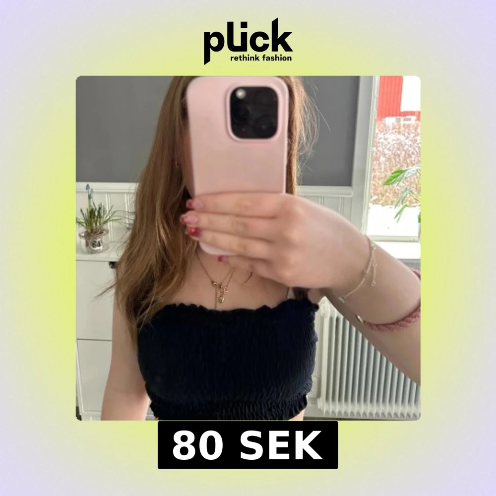 Säljer en svart tubtopp med smockad design. Perfekt för varma dagar eller som ett lager under en jacka. Enkel och mångsidig topp som passar till det mesta.