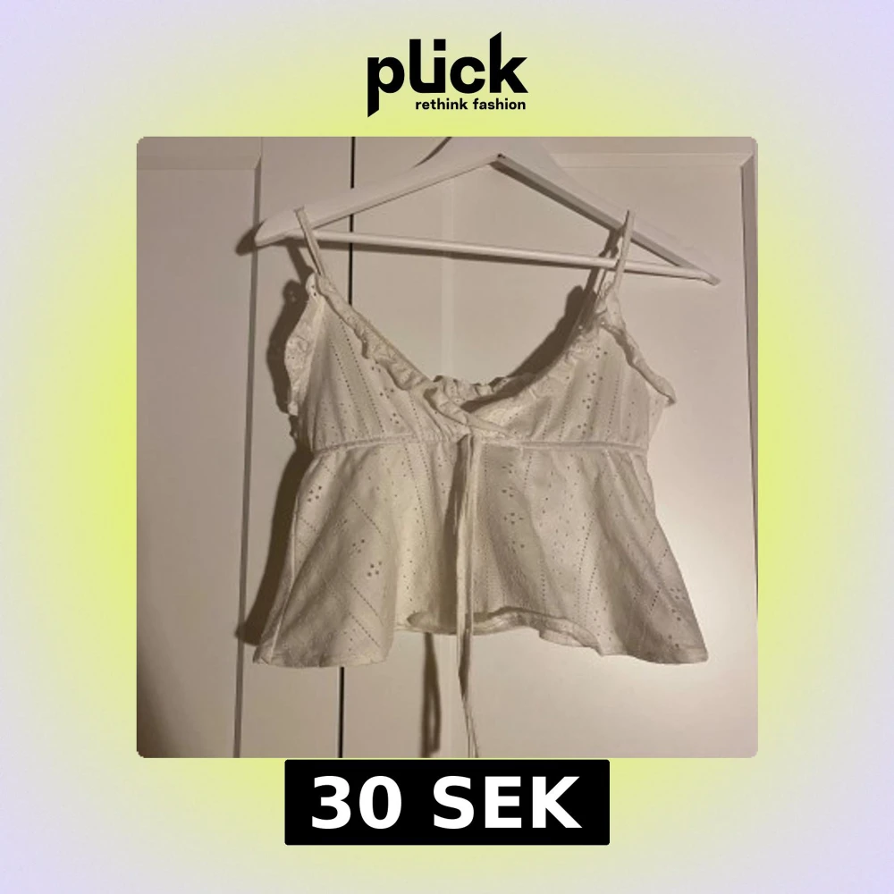 Säljer en söt vit linnetopp med broderade detaljer och smala axelband. Toppen har snörning framtill och en lätt volangkant vid axlarna. Perfekt för varma dagar och ger en romantisk vibe till din outfit.