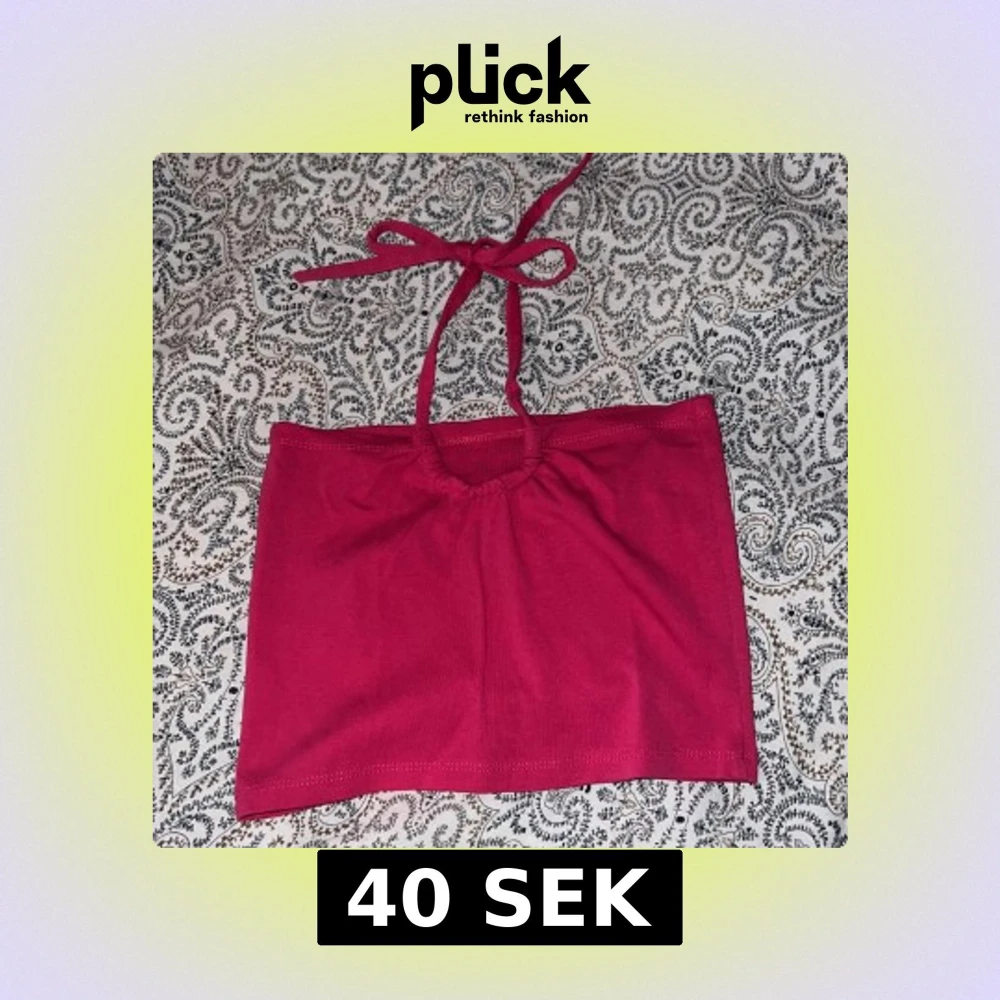 Säljer en mörkrosa tubtopp med knytband i nacken. Toppen har en enkel och stilren design med lätt rynkning framtill.