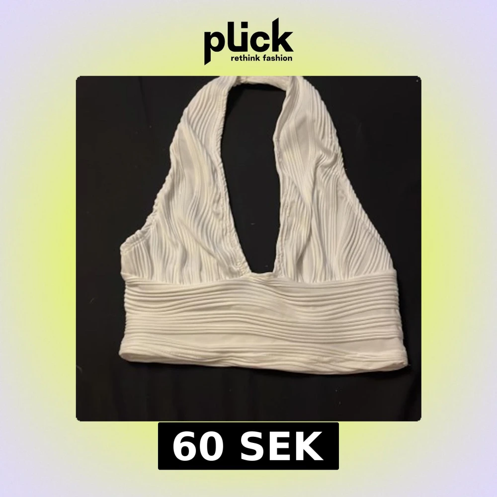 Säljer en vit ribbad halterneck topp från Shein i storlek XS. Toppen har djup v-ringning och bred resår nedtill för en snygg passform. Perfekt för dig som gillar stilrena och trendiga plagg med cool struktur. Nytt skick fast ingen prislapp.