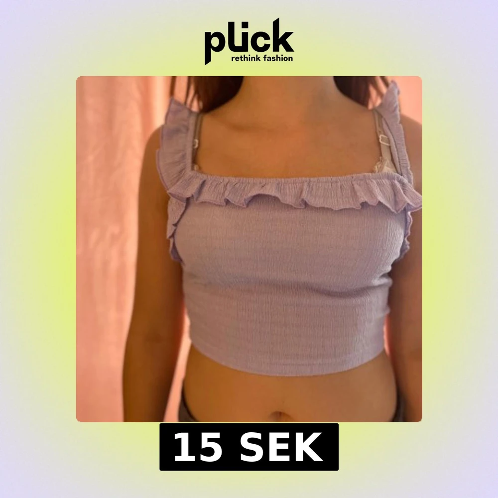 Supersöt ljuslila croppad topp från SHEIN med volangdetaljer längs axelbanden och urringningen. Toppen är ärmlös och har en smockad, stretchig struktur som sitter tajt mot kroppen. Perfekt för dig som gillar en feminin och trendig look.