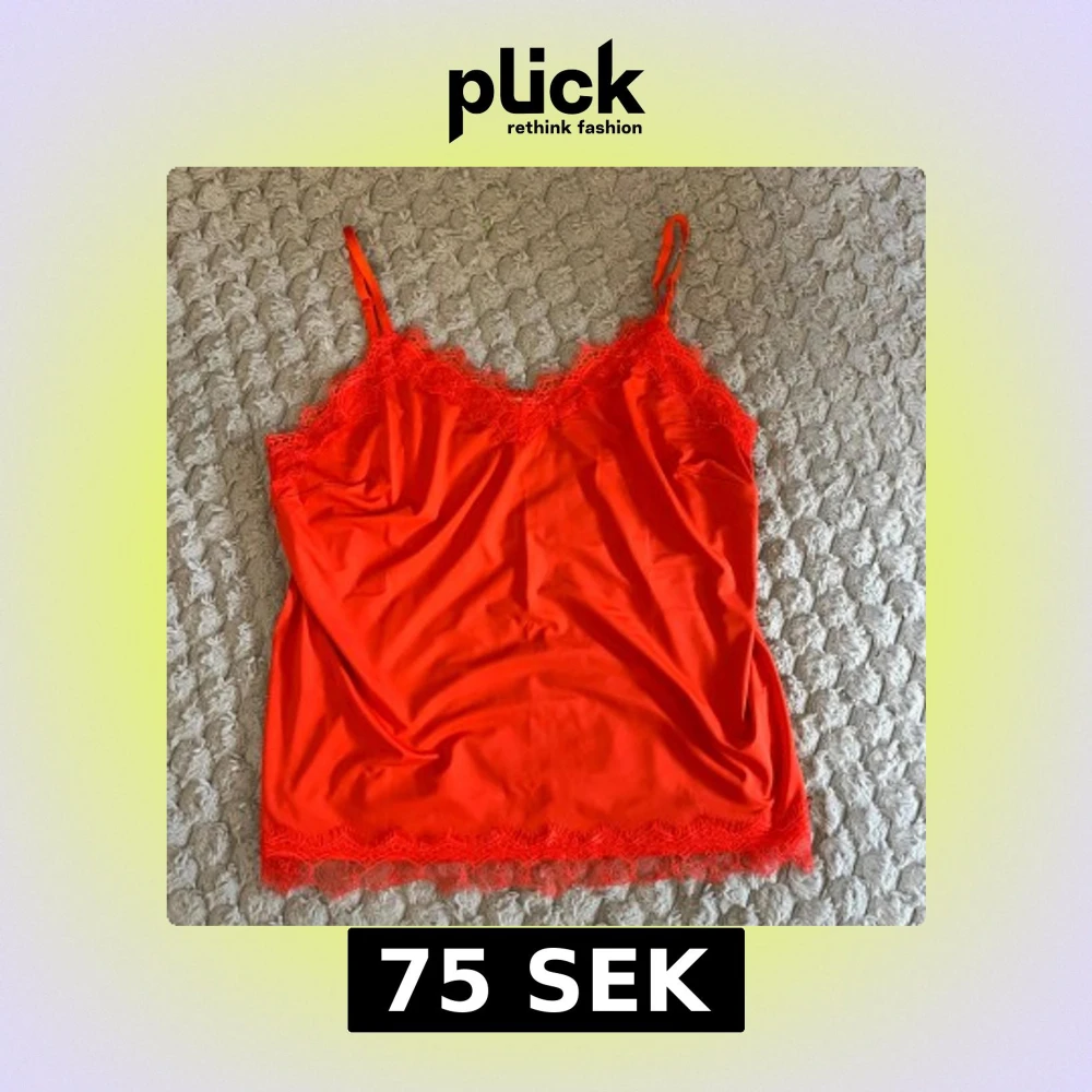 Snygg röd linnetopp från Freequent med tunna justerbara axelband och dekorativ spets längs både ringning och nederkant. Toppens material är glansigt och mjukt, vilket ger en lyxig känsla. Perfekt för dig som vill sticka ut med färg och detaljer.