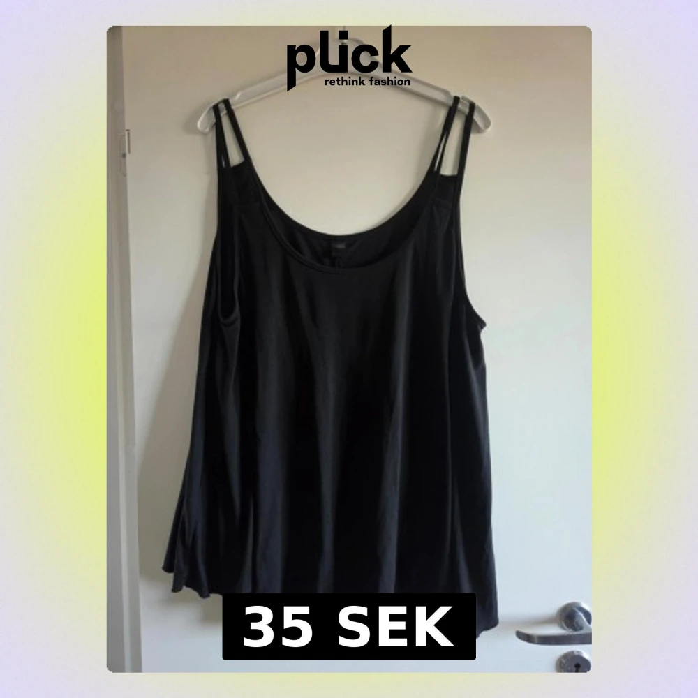 En svart, ärmlös linnetopp med smala axelband och rundad urringning både fram och bak. Toppen har en loose passform och är tillverkad i mjukt bomullstyg, perfekt för varma dagar eller som lager på lager-plagg.