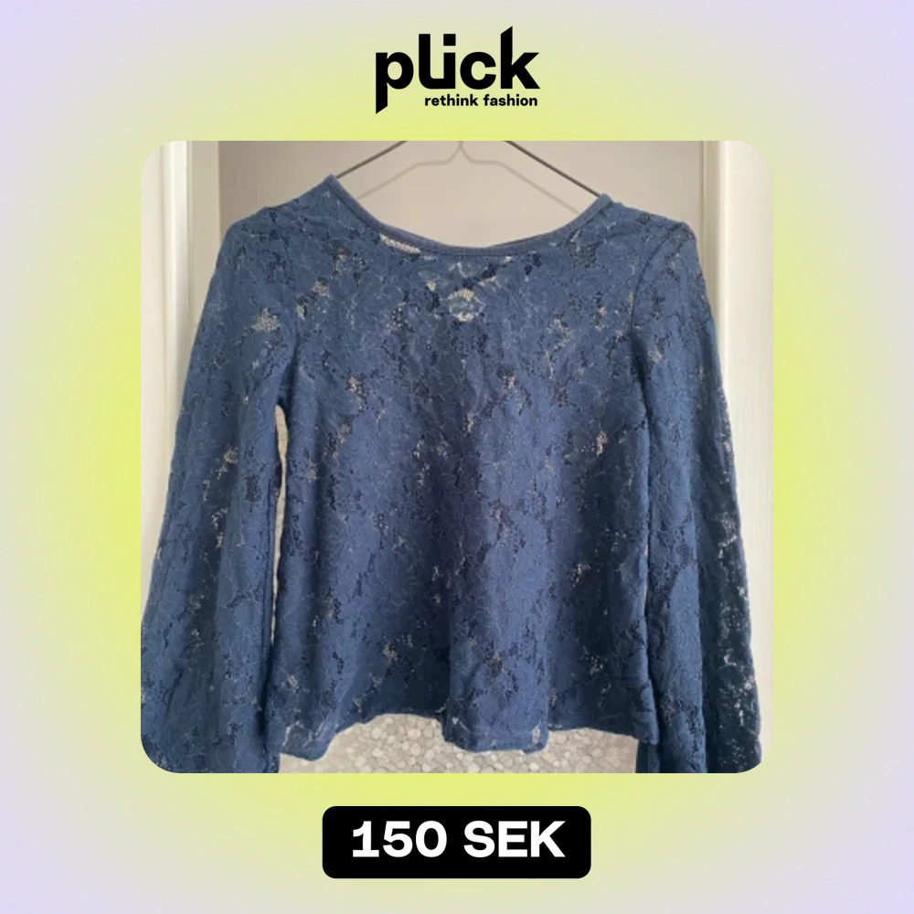 Säljer en superfin blå spetsblus med långa ärmar. Blusen har en vacker spetsdesign och en snygg snörning på ryggen. Perfekt för både vardag och fest! 💙