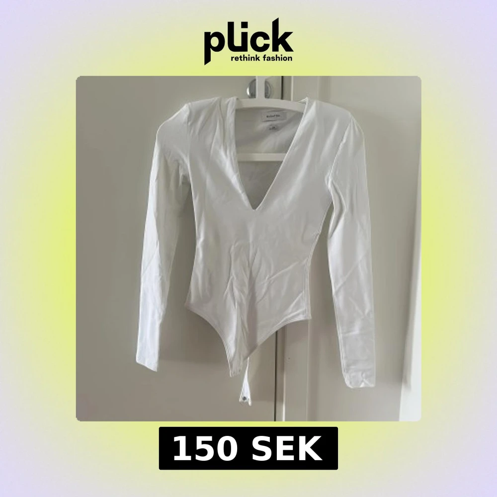 Säljer en vit långärmad korsett-topp från Babaton med djup v-ringning och spetsig nederkant. Toppens material är mjukt och stretchigt, perfekt för att skapa en snygg siluett. Stängs med knappar i grenen. Supersnygg att styla med jeans eller kjol! Shoulder pads
