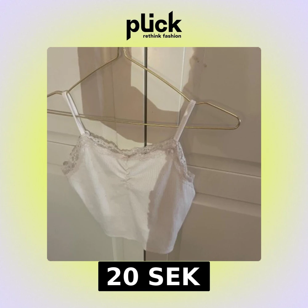 Söt vit ribbad linnetopp med smala axelband och spetsdetaljer längs kanten. Perfekt för varma sommardagar eller som ett lager under en tröja. Enkel och stilren design som passar till det mesta.