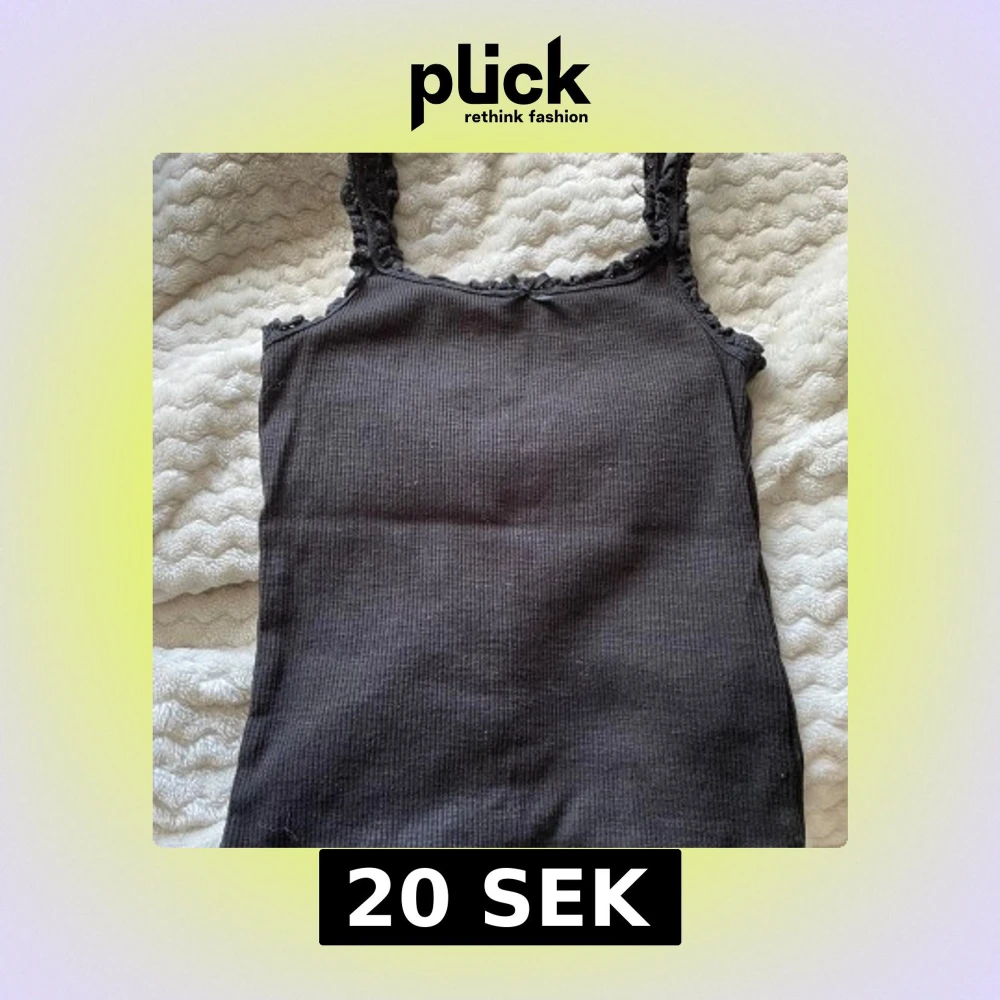Supersöt svart ribbad linnetopp från H&M Divided med spetsdetaljer. Toppen har en croppad passform och vågig kant nedtill som ger en extra touch. Perfekt att styla med jeans eller kjol för en chill look.