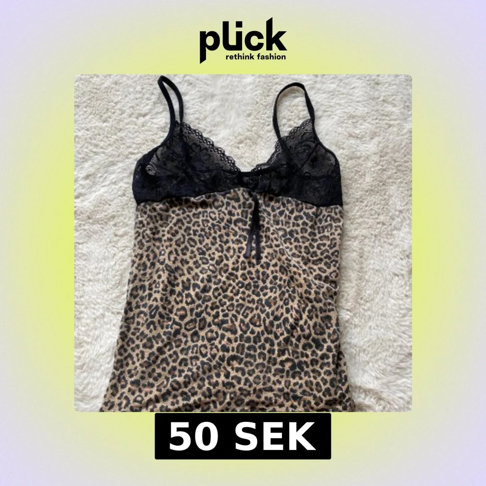 Snygg linne-topp med leopardmönster och svarta spetsdetaljer upptill. Smala axelband och en söt rosett framtill. Perfekt för dig som vill sticka ut med en djurisk vibe. Materialet är mjukt och följsamt, och spetsen ger en extra touch av elegans.