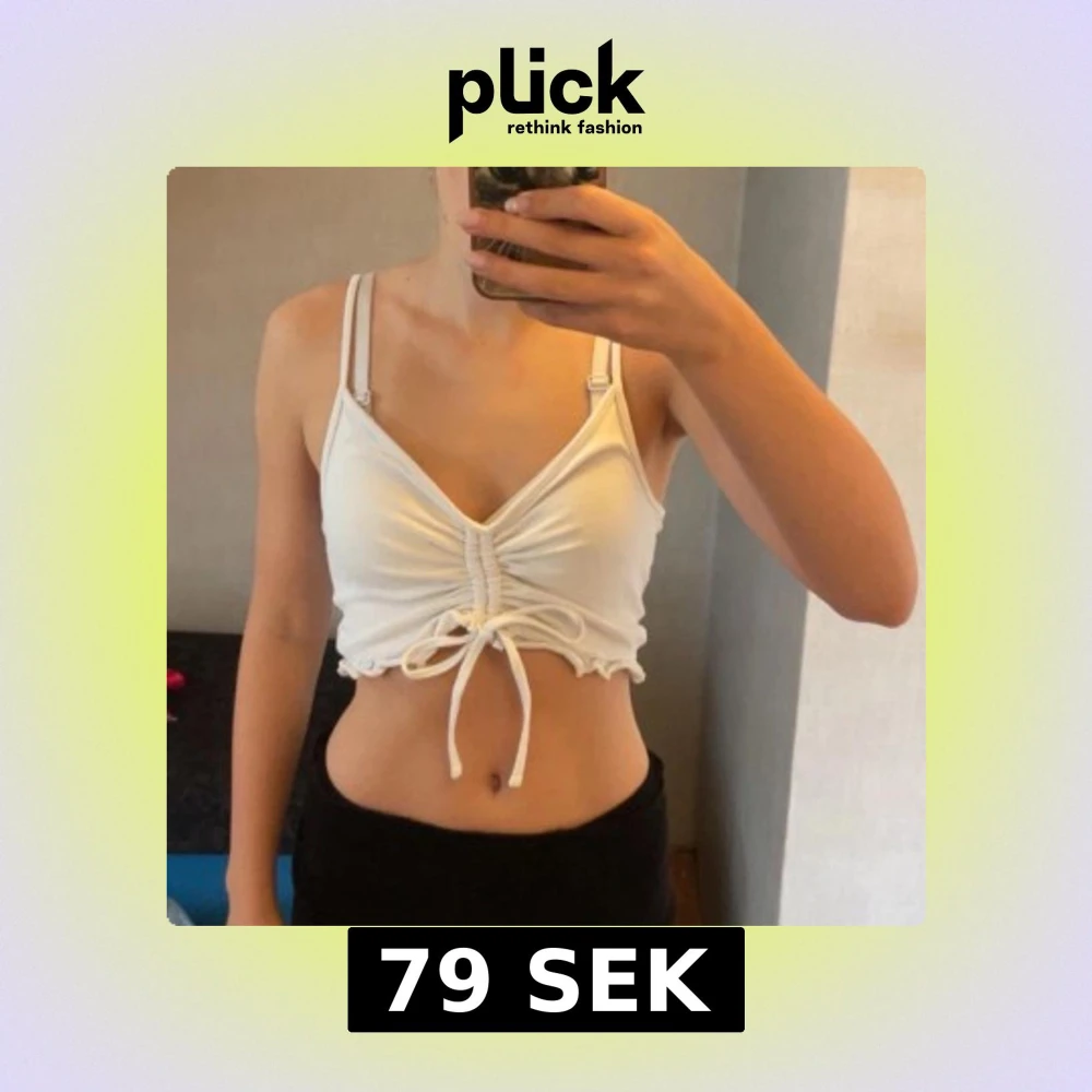 Superfin vit croppad linnetopp från FB Sister med smala axelband och snygg snörning framtill. Går att skjutstera längden framtill med hjälp av snörena! Toppen har volangkant nertill och är perfekt för varma dagar. Mjuk och stretchig bomullskänsla som sitter skönt på kroppen.🤍🤍