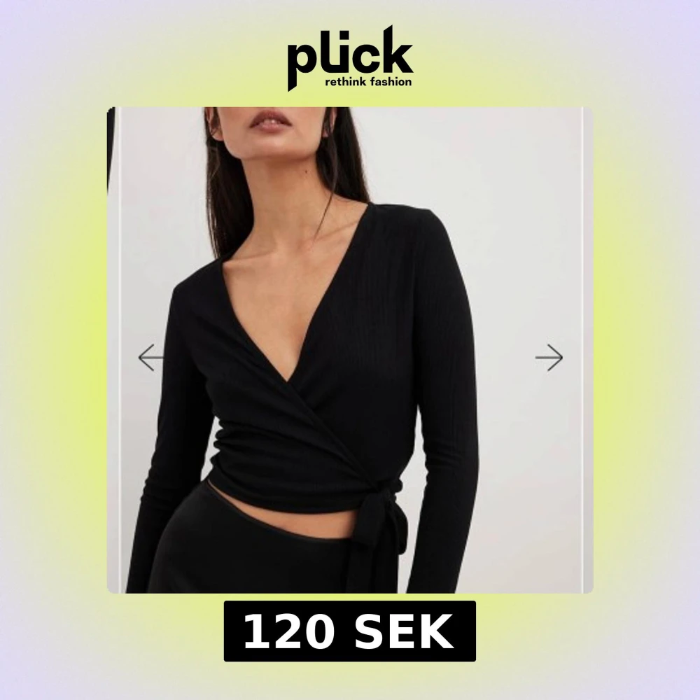 Oanvänd snygg svart omlottopp med lång ärm och knytning i midjan. Toppen har en v-ringad design och är perfekt för en stilren look. Från NAKD