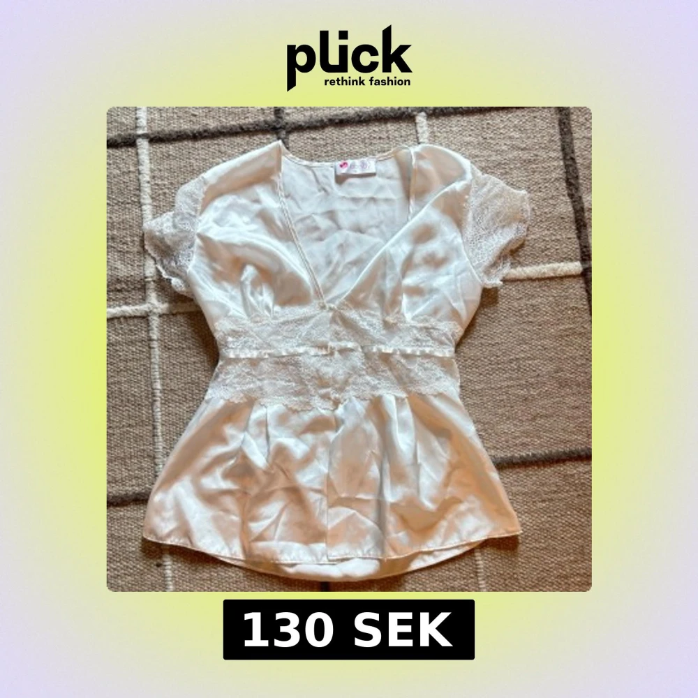 Supersöt vit blus i glansigt sidenmaterial från Bondy storlek S, med v-ringad hals och korta spetsärmar. Dekorerad med bred spets och pärlknappar över midjan för extra romantisk vibe. Säljer då jag har aldrig fått chansen att använda den :)