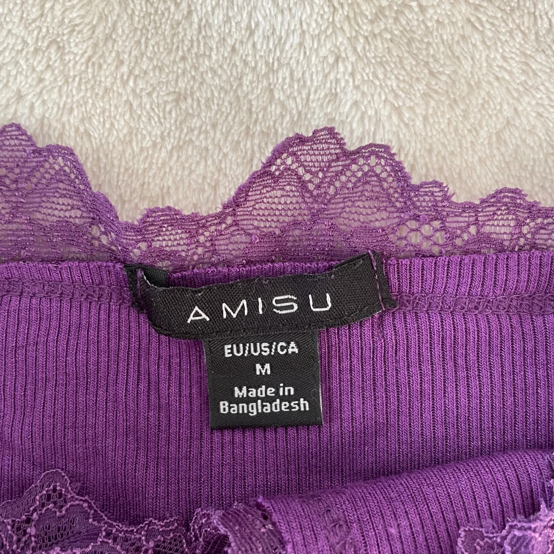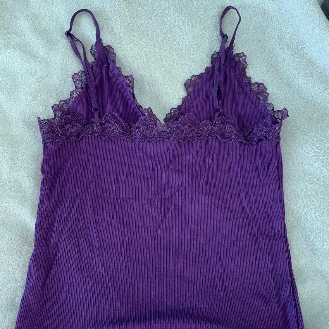 Ett lila linne med spets. Storlek S/M, pris kan diskuterasđ