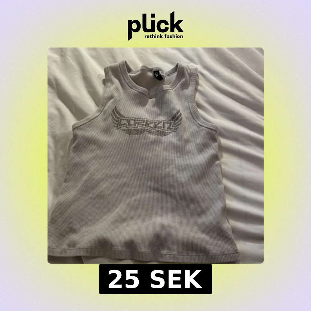 Säljer en grå ribbad linnetopp från Cörkat med tryckt logga och vingar framtill. Toppen är ärmlös och har rund halsringning. Perfekt för en avslappnad och cool stil.