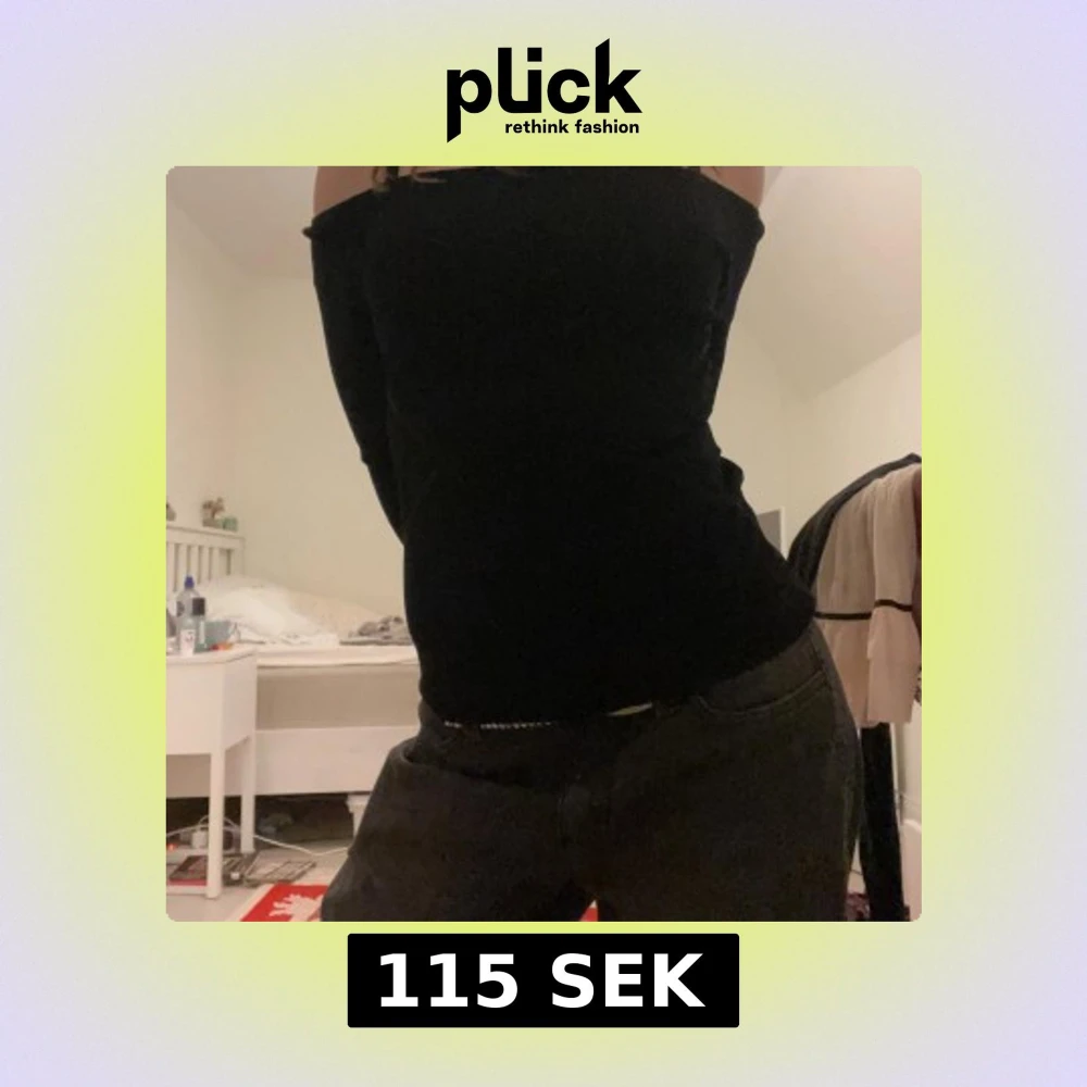 svart, tight och ribbad offshoulder topp. sitter snyggt figurnära och passar perfekt till jeans eller kjol!!