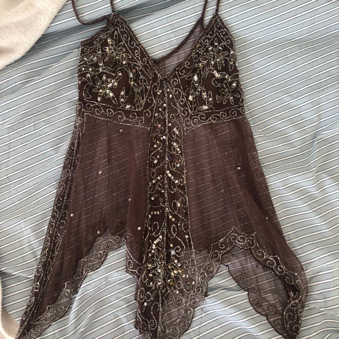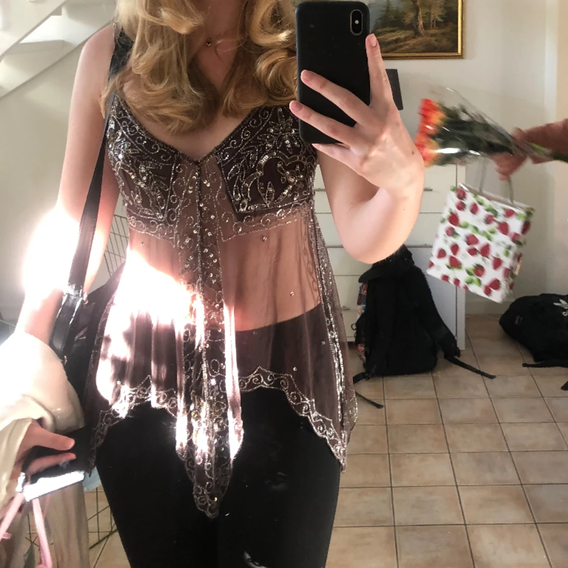 En cool festtopp som jag säljer då den tyvärr inte kommer till så mycket användning längre! Några få pärlor som lossnat på vissa ställen men inget som syns/märks. Står storlek M/L men passar absolut mindre storlekar också.🌟🌟🎈