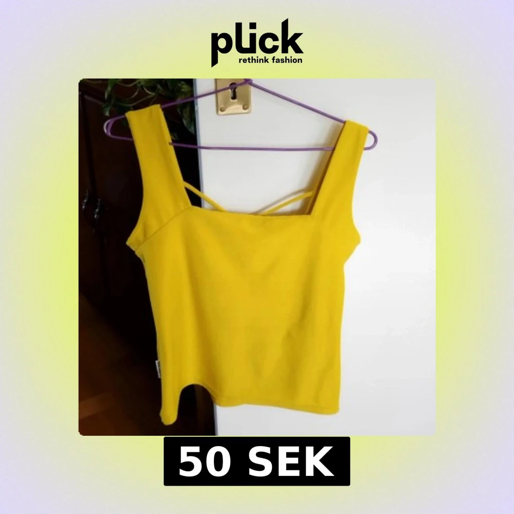 Snygg gul linnetopp från Moda Casual med breda axelband och cool snörningsdetalj i ryggen. Perfekt till sommar eller fest :) storlek S-M