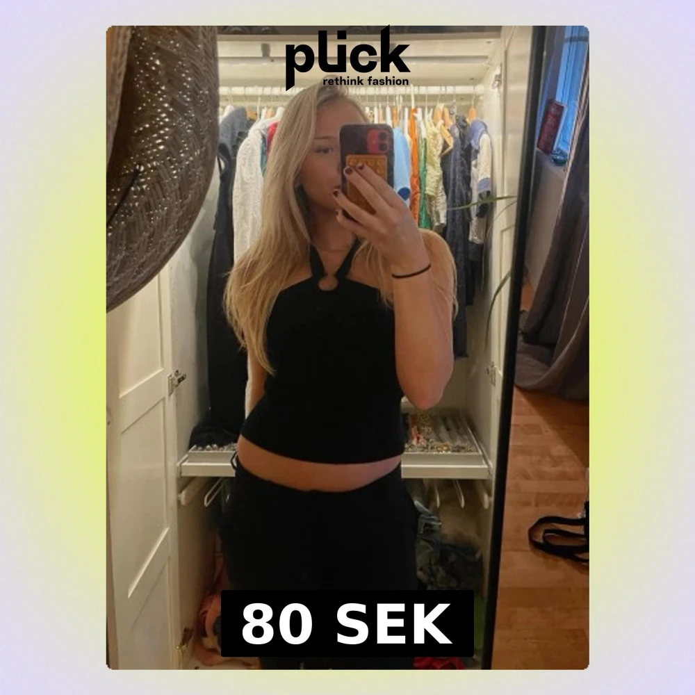 Säljer en svart ribbad halterneck topp med snygg ringdetalj framtill. Toppen är ärmlös och har en tight passform som framhäver figuren. Perfekt till jeans eller kjol för en trendig look.
