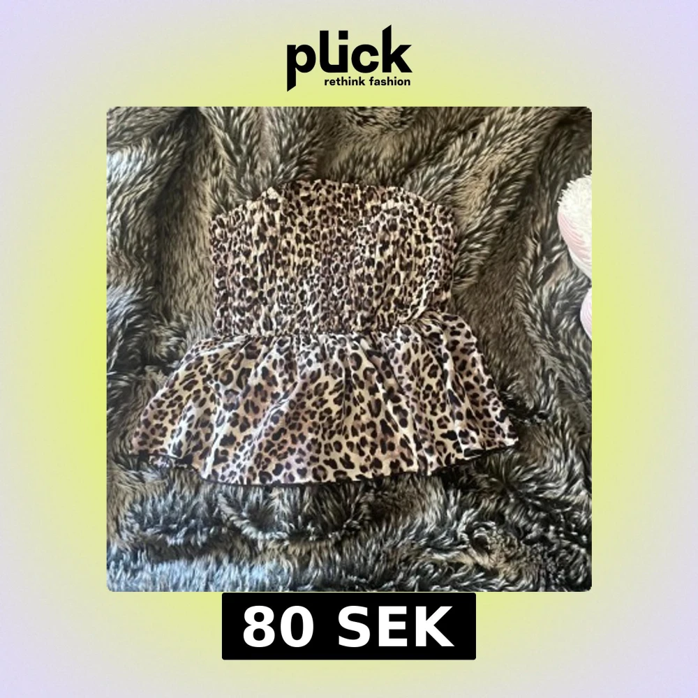 Säljer en tubtopp från Romwe i storlek S med leopardmönster. Toppen har smockad överdel som sitter tight och en volang nedtill som ger en snygg siluett. Färgerna är beige, brun och svart. Perfekt för dig som vill sticka ut med ett djuriskt print.