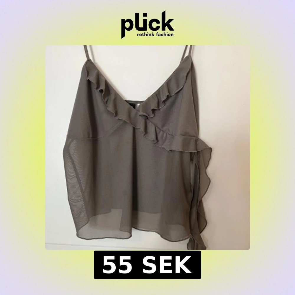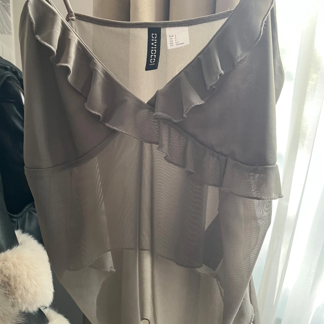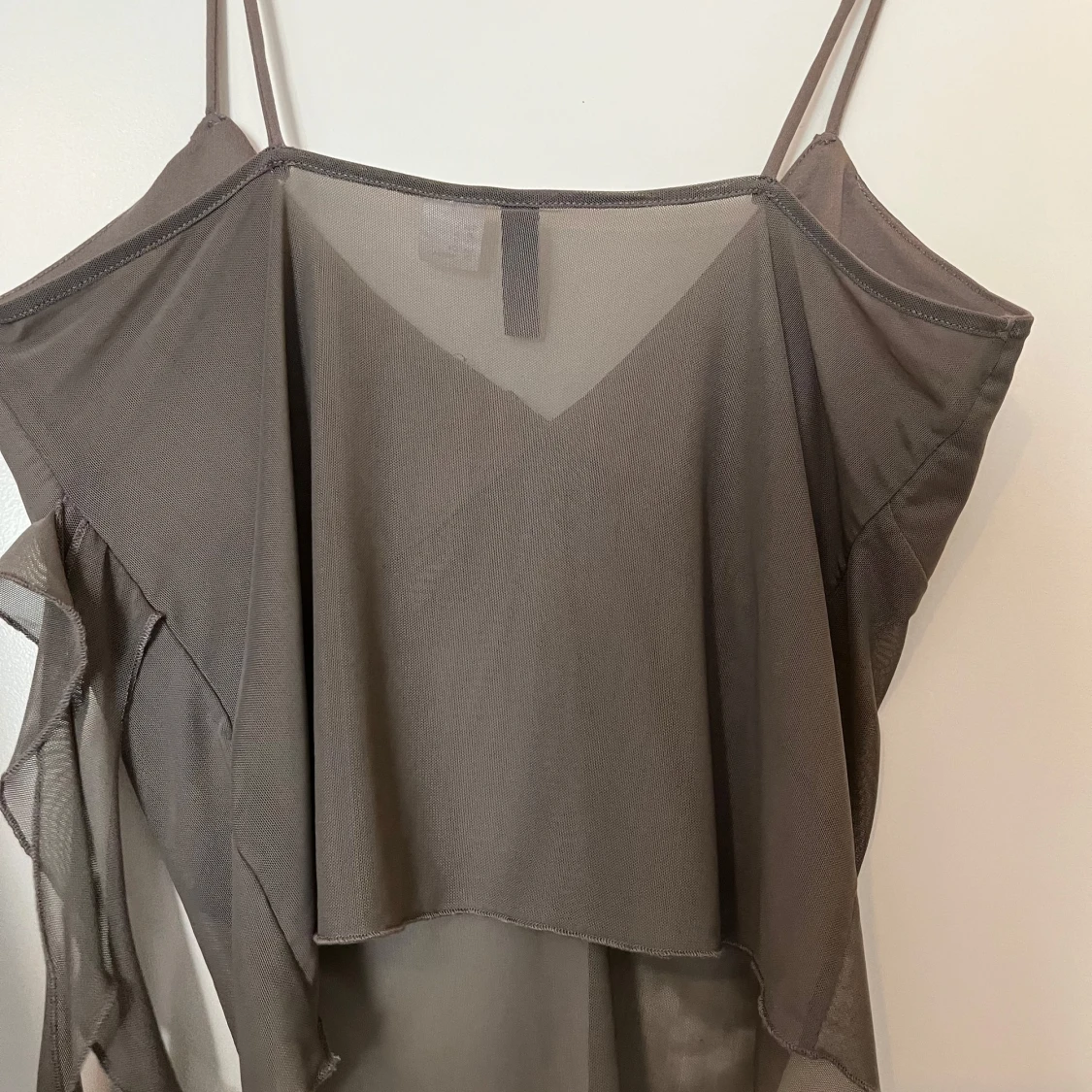 Fint grått linne med volanger. Perfekt för sommaren. lite y2k stil. Genomskinlig i magen och ryggen men täcker bysten.