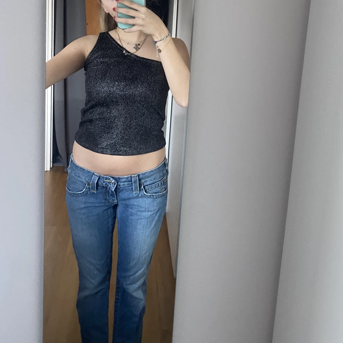 En one shoulder festtopp köpt från secondhand- okänt märke! Den är i strl 146-152 men passar mig med xs-s. Väldigt unik med coola mönster.