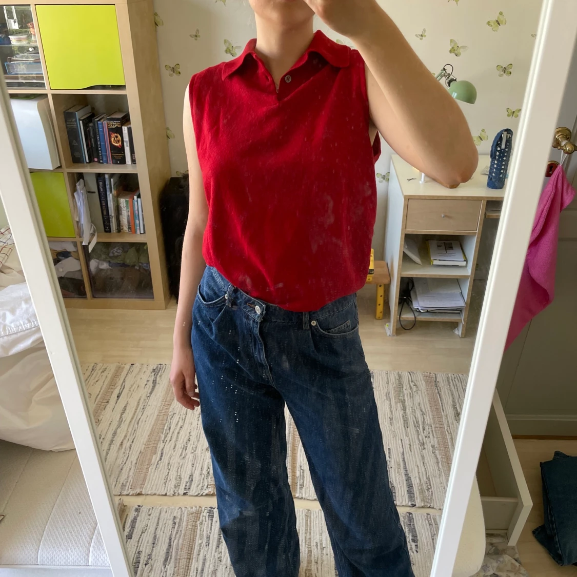 Västen var från början en tröja men blev omsydd av mig. Den är fint skick och så tyget är inte sticksigt.💗 Frakt tillkommer