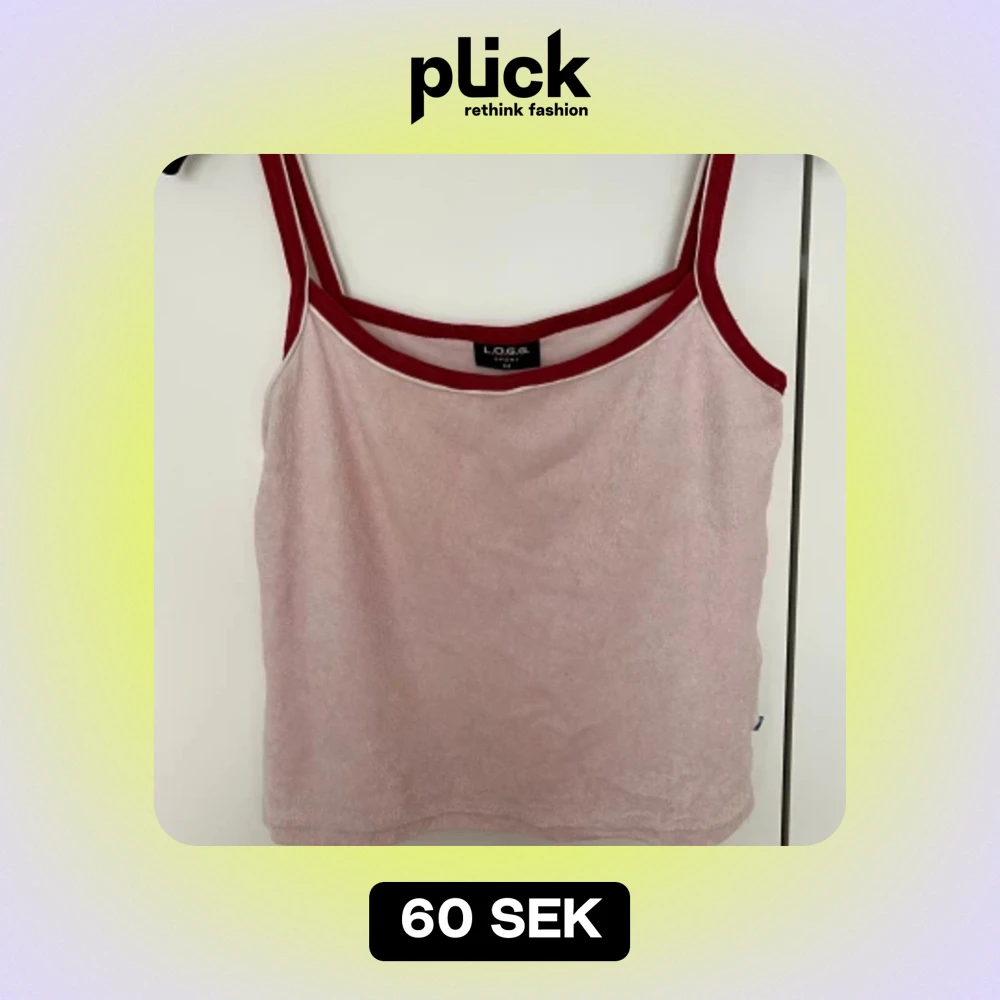 Supergulligt ljusrosa linne med röda axelband som passar perfekt nu till sommaren! đžlinnet har tyvĂ€rr en jĂ€tteliten flĂ€ck framtill (se bild 3)