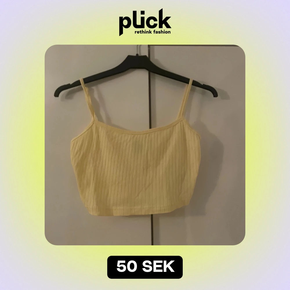 Säljer två ribbade linnen tillsammans i härliga färger, ett i ljusgult och ett i ljusblått. Perfekta för sommardagar. De har smala axelband och en croppad passform. Superbekväma och stilrena!