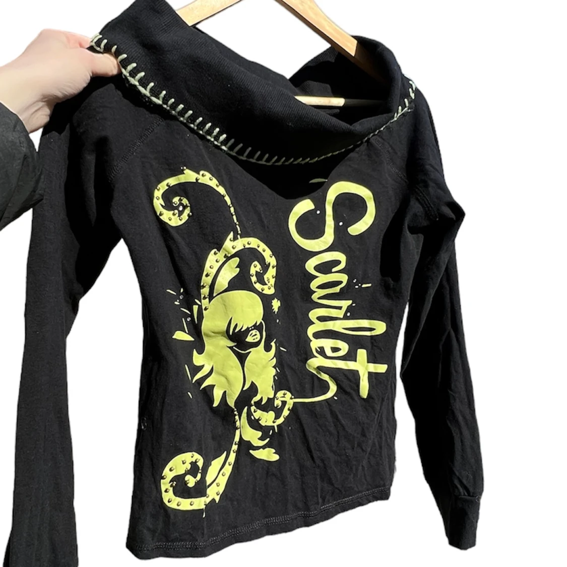 Tight långärmad tröja med tryck på:) Cool boatneck ringning! Köpt 2hand