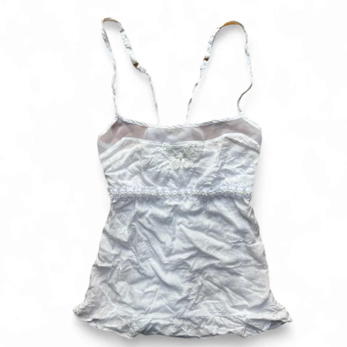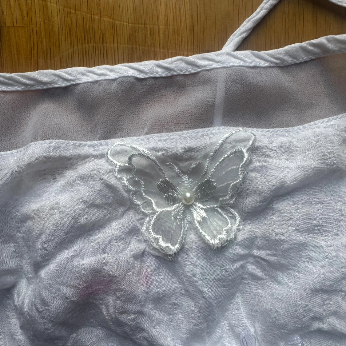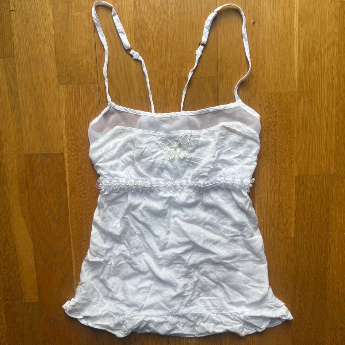 söt topp med fjärilar och pärlor. gammal bershka. Strl M men skulle mer säga XS-S. Banden korsas i ryggen.