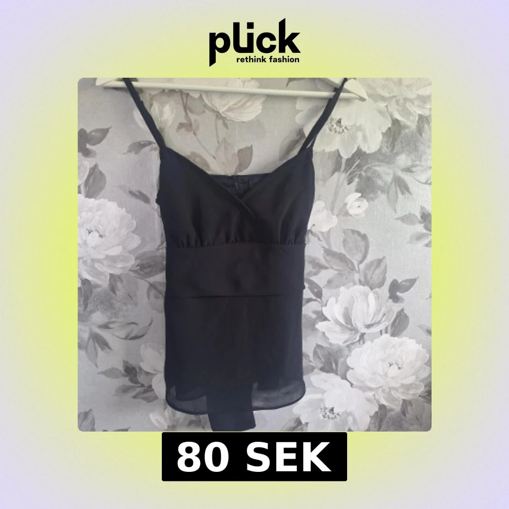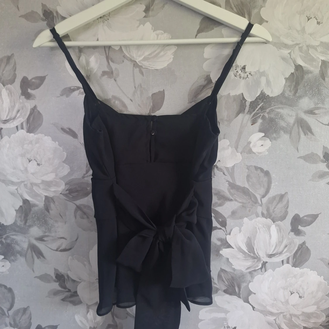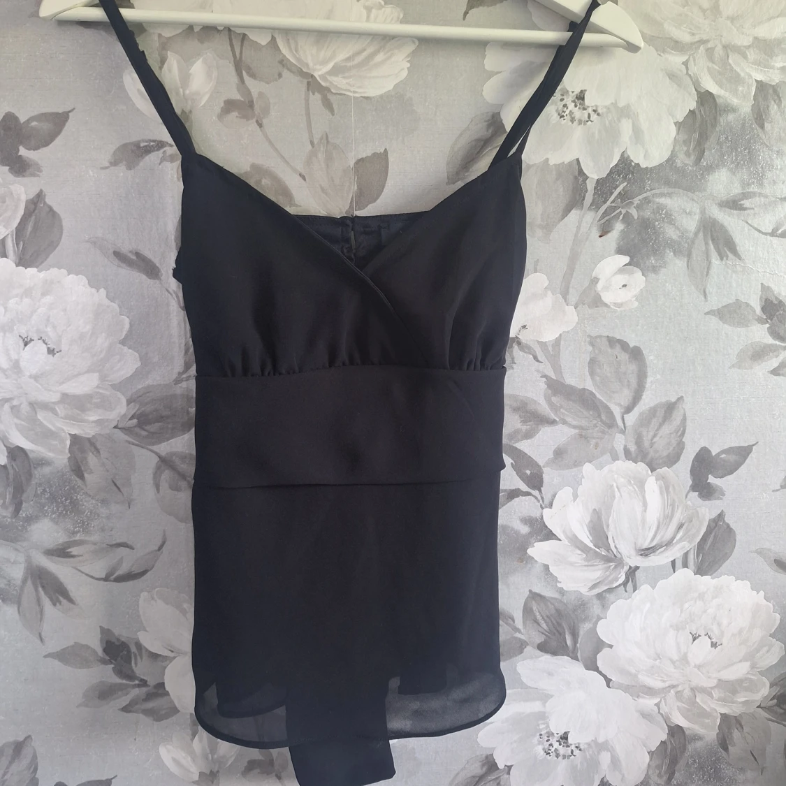 Supersnygg svart linnetopp från Vero Moda i storlek XS. Toppen har smala axelband, omlott-skärning framtill och band i ryggen som man kan knyta till en rosett 💕 Vintage i strl 34. Pris kan alltid diskuteras ☺️