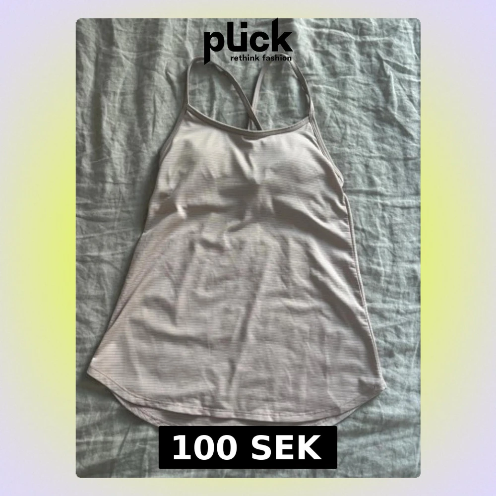 Säljer ett ljusrosa linne från Manduka med tunna axelband. Toppen har inbyggd bh och är tillverkad i ett stretchigt, snabbtorkande material som passar perfekt för gym eller yoga.