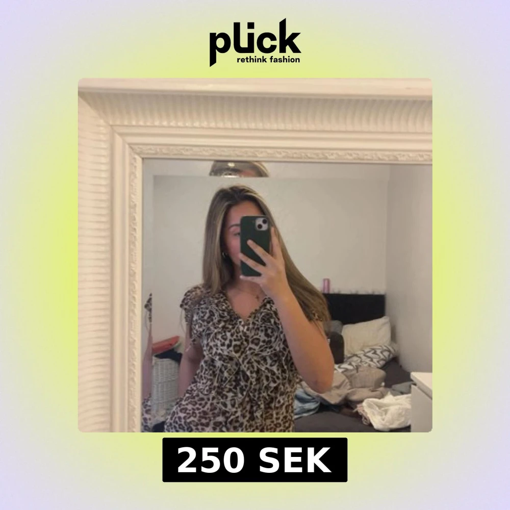 Säljer en snygg leopardmönstrad blus med volangdetaljer längs halsringen. Original pris 500kr har inte haft den mycket på grund av att jag inte gillade mönstret
