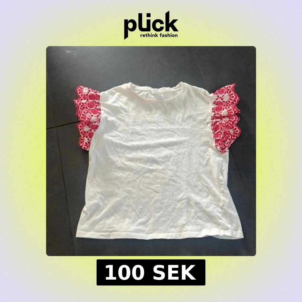 Säljer en vit topp från Zara med korta volangärmar i vitt och rött. Inga defekter, skriv vid frågor ❤️