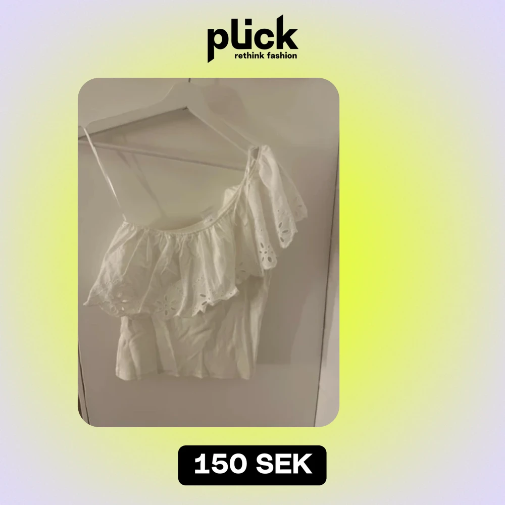 Jätte snyggt one shoulder linne från zara den är från kids och är i storleken 164 men passar xs-m skulle jag säga säljer då den var lite konstig i passformen (Lånad bild) köpt av en annan här på plick tryck inte på köp nu 💕