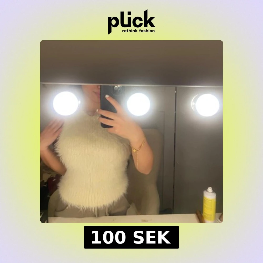 Säljer en fluffig vit ärmlös topp i pälsimitation. Toppen har en rund hals och är perfekt för att ge en trendig look. Passar bra till både jeans och kjol.