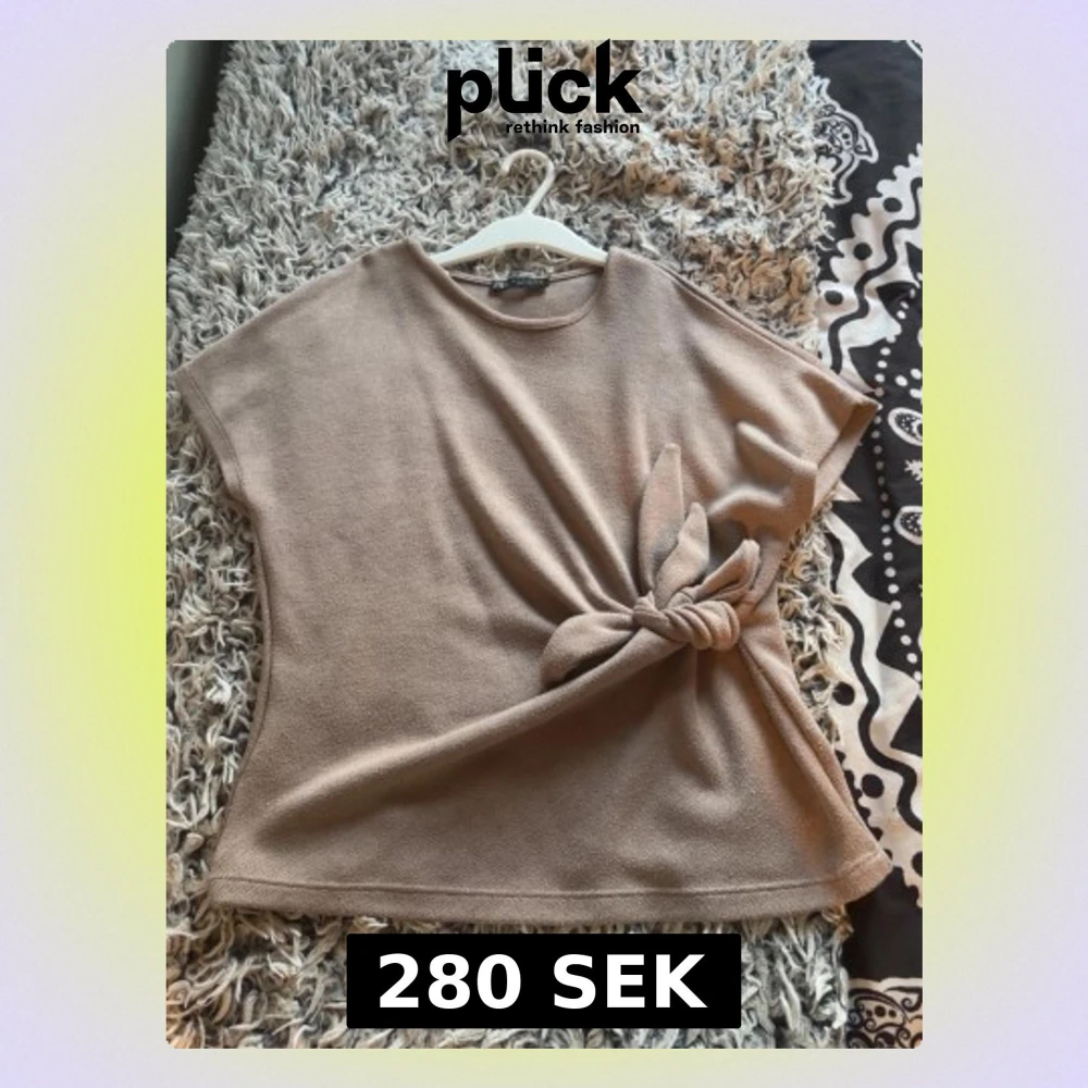Säljer en beige stickad topp från Zara med korta ärmar och snygg knytning i sidan. Knappt använd 💞