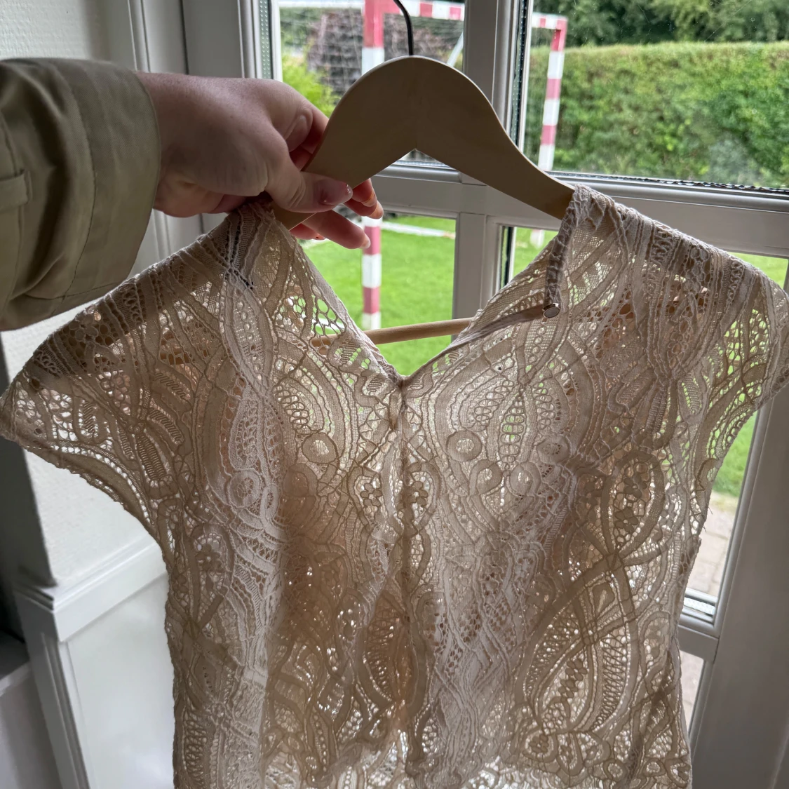 Superfin beige blus från Zara. Blusen har ett genombrutet mönster och är ärmlös, perfekt för dig som gillar romantisk och bohemisk stil. Snygg att styla med jeans eller kjol för en trendig look.
