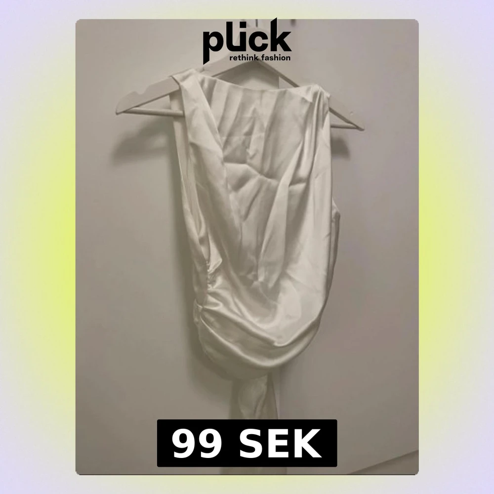 Supersnygg vit topp med öppen rygg och knyte i ryggen från Zara i glansigt tyg. Tröjan är lite skrynklig men följs tvättrådeb går den att få som ny!