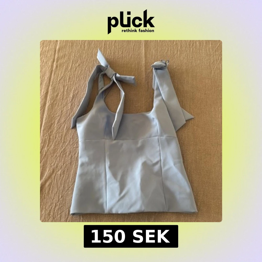 Supersöt ljusblå linnetopp med breda axelband som knyts i rosetter på axlarna. Toppen har en rak, något figurnära passform och är sydd i ett slätt, mjukt tyg som ger en stilren outfit, aldrig använd!