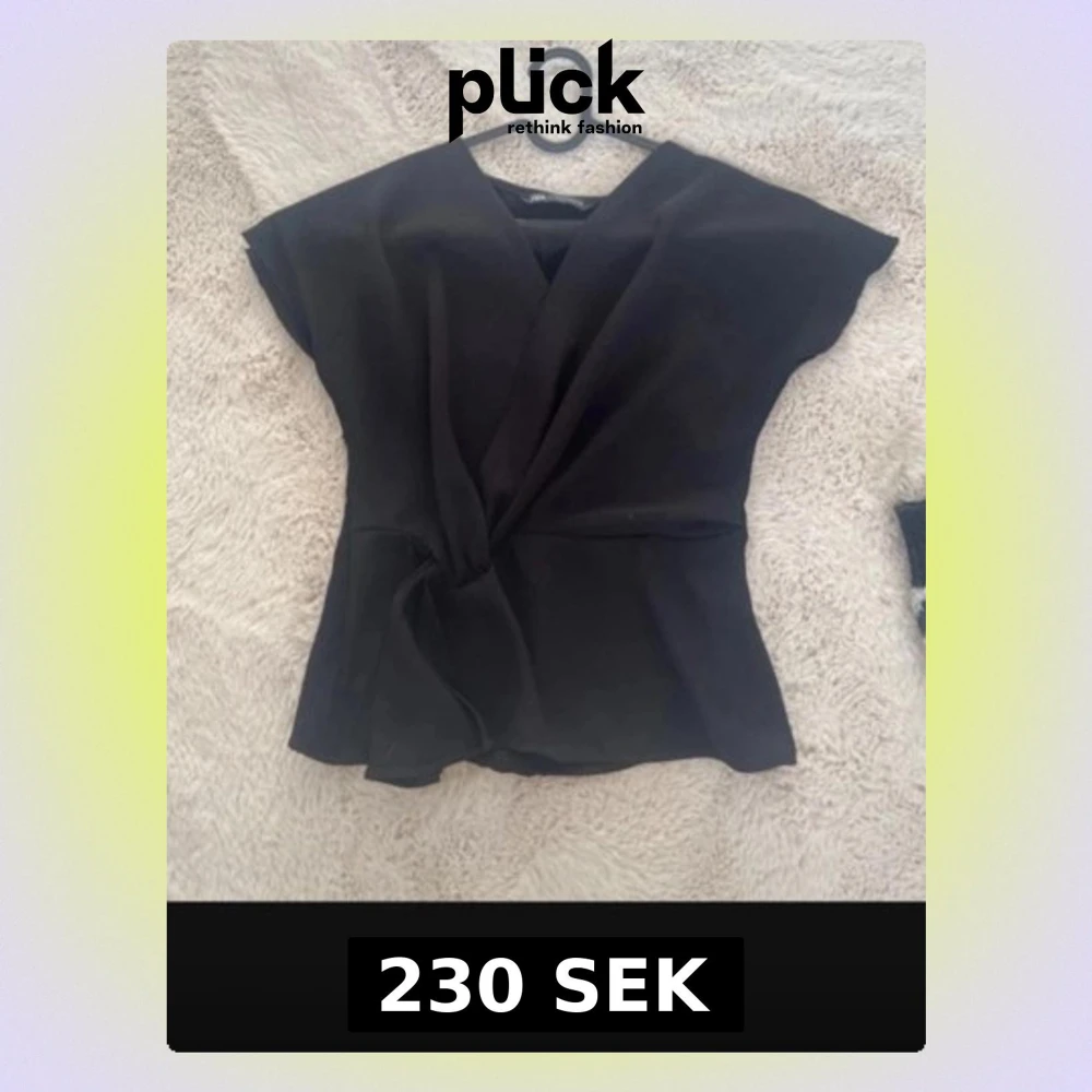 Snygg svart omlottopp med knytband i midjan och korta ärmar. Toppen har en djup V-ringning och ett mjukt, lätt tyg som faller fint. Perfekt för dig som gillar stilrena och trendiga plagg med en twist.